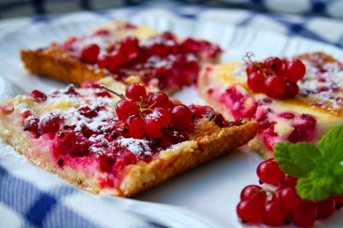 Mina tegin kooki punaste sõstardega, ent olen enam kui kindel, et seda saab teha ka muude marjadega. Tegemist on õhukese plaadikoogiga.