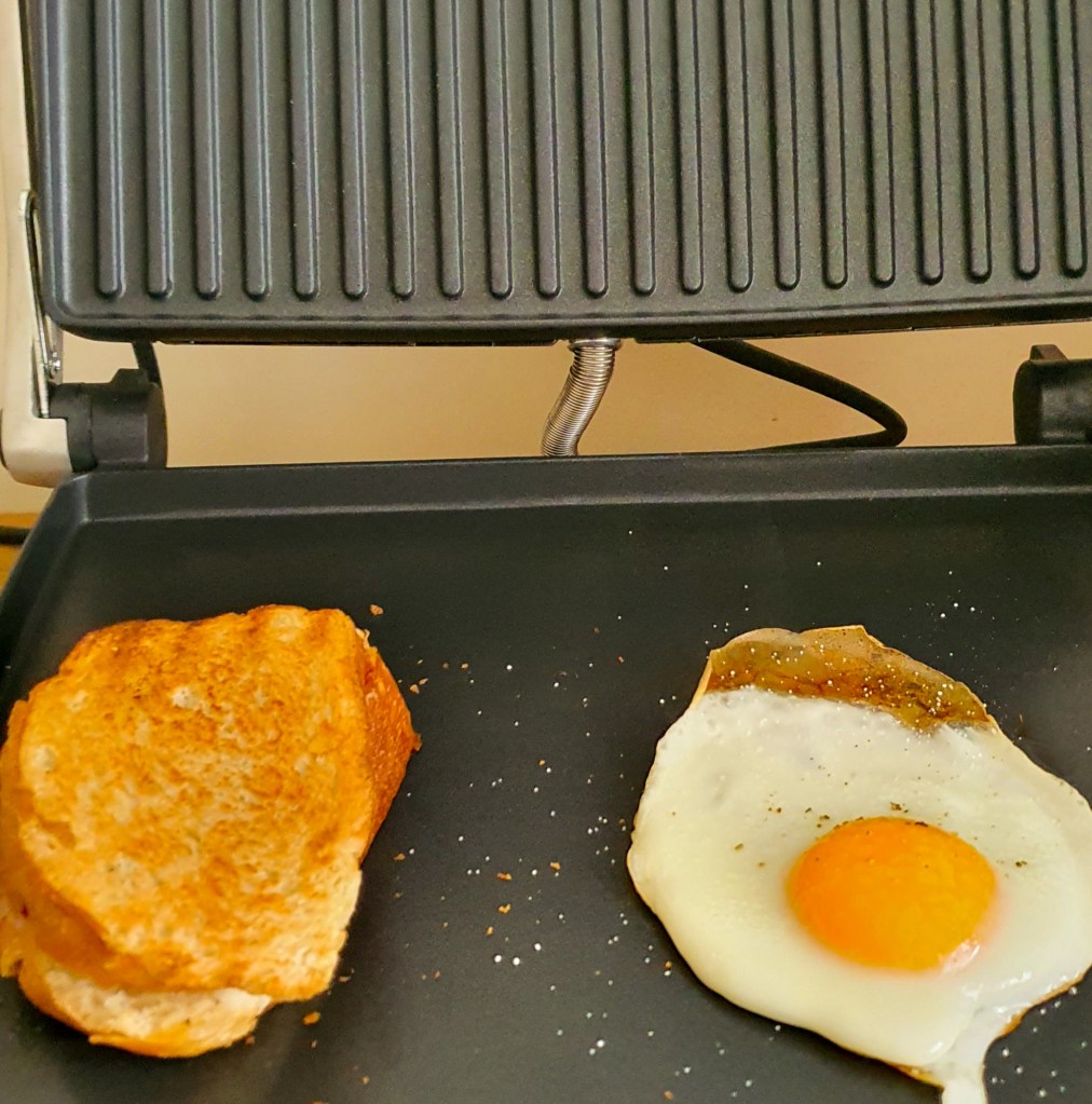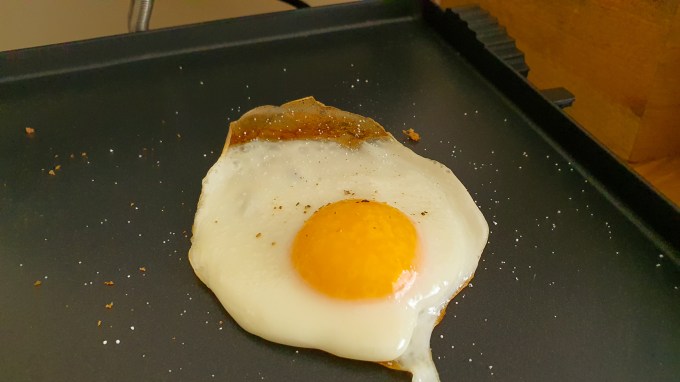 Muuseas, nii ideaalset härjasilma nagu Sage’iga pole ma pannil kunagi saanud ja eemaldamine grillplaadilt väikse spaatliga, mis seadmega kaasa tuleb, muretu. Sai oli ka mõnusalt krõbe ja juust sulanud, nii et supermaitsev hommikuamps.