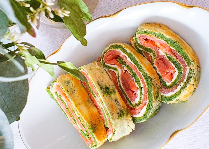 Nüüd läheb tarvis kaht puhast ja niisket köögirätikut. Võta plaat ahjust välja, kata see köögirätikuga ja pööraümber – nii et roheline pool allpool. Eemalda küpsetuspaber ja kata põhi teise niiske rätikuga. Lase pool tundi jahtuda ja pööra siis põhi seda endiselt rätikute vahel hoides ümber, nii et spinatine pool oleks taas pealmine kiht.