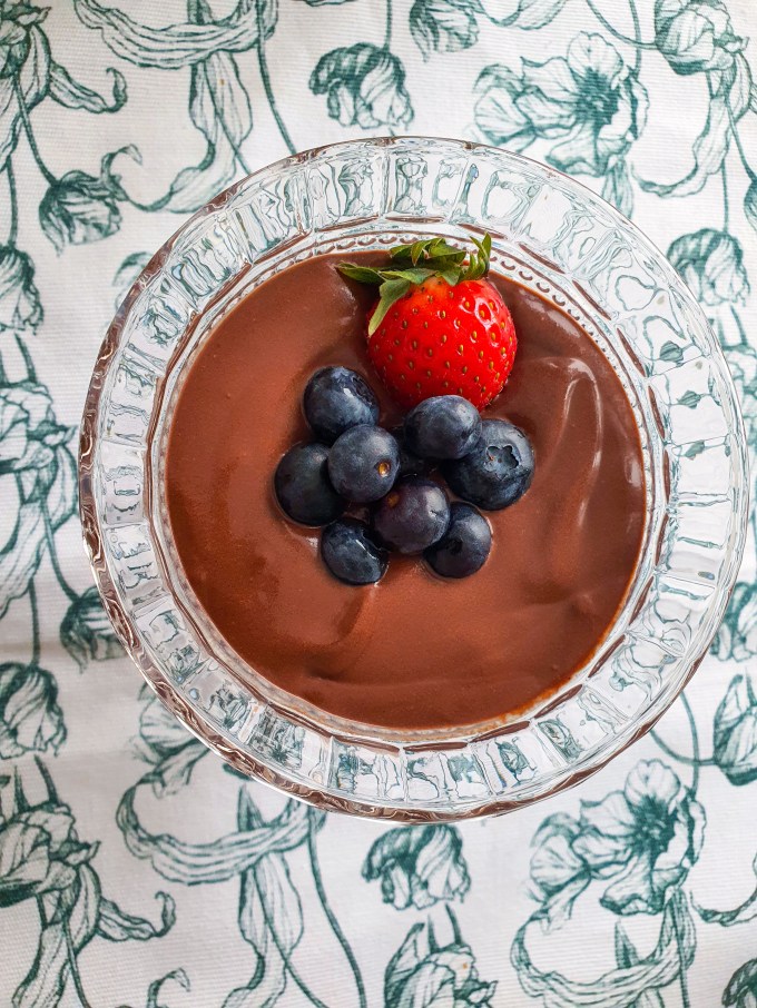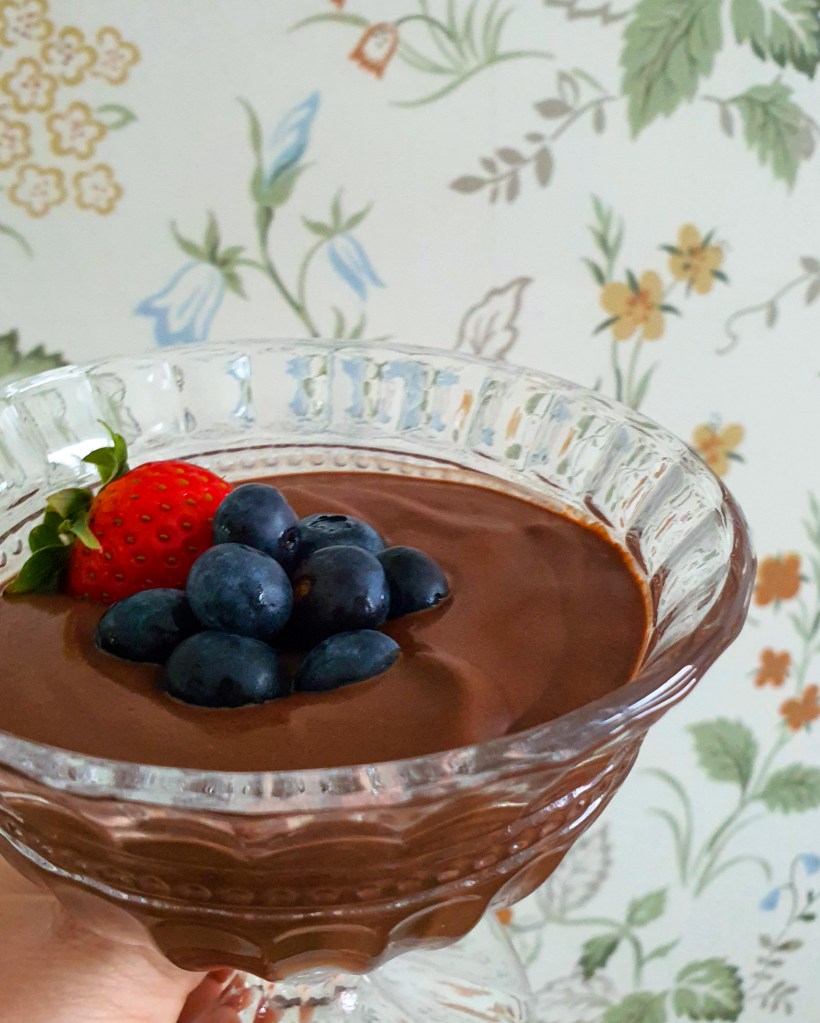 Valmistamine: Vala kõik ained kaussi, sega läbi, blenderda või mikerserda kõik siidiseks šokolaadiseks vahuks. Maitse magusust ja lisa vajadusel agaavisiirupit. Serveeri värskete või külmutatud hapukate marjadega. Šokolaadivaht on siidine ja rikkalik, kogusest jagub ka 6le sõbrale – head asja ei peagi palju olema:)