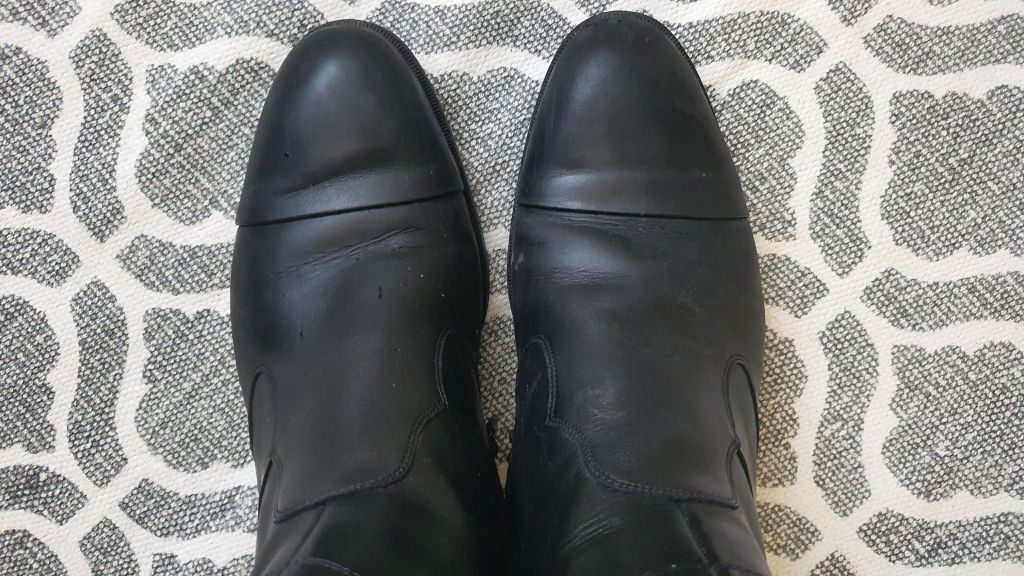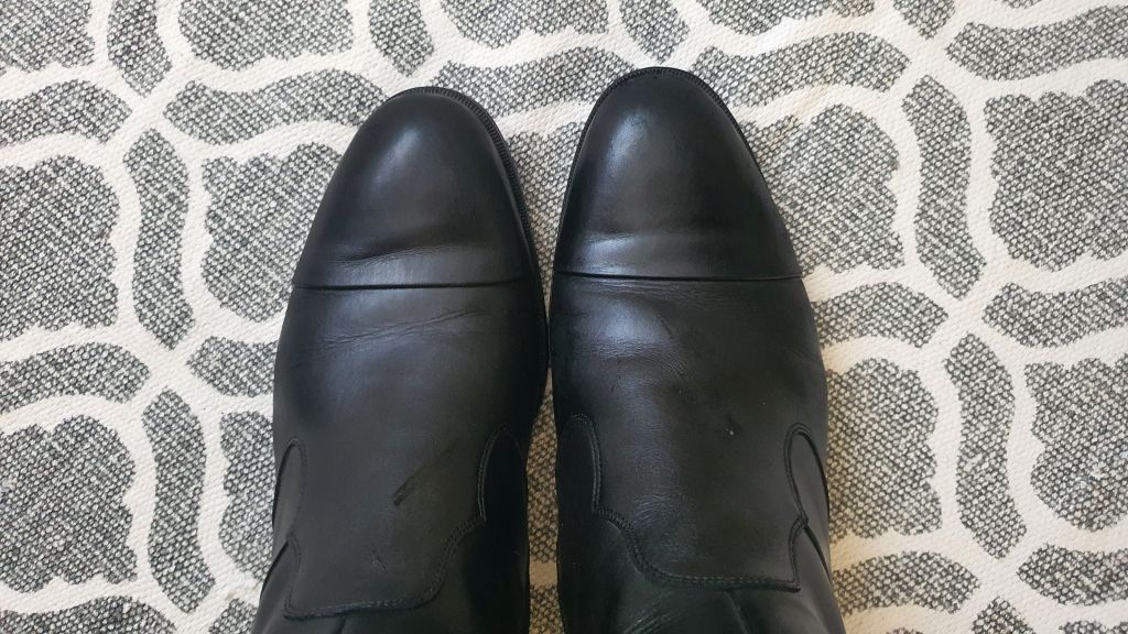 Maru kahju on hääd toidukraami raisata, aga löön ohates siiski kaks muna katki ja jagan kaussidesse, valged-kollased eraldi ja kastan lapi munavalgekaussi. Noh, ütleme et et libe munavalge pole käe küljes teab kui meeldiv, kuid tulemus on üllatavalt hea – tõepoolest jätab munavalgega määrimine nahksaabastele veidi läikiva kihi.