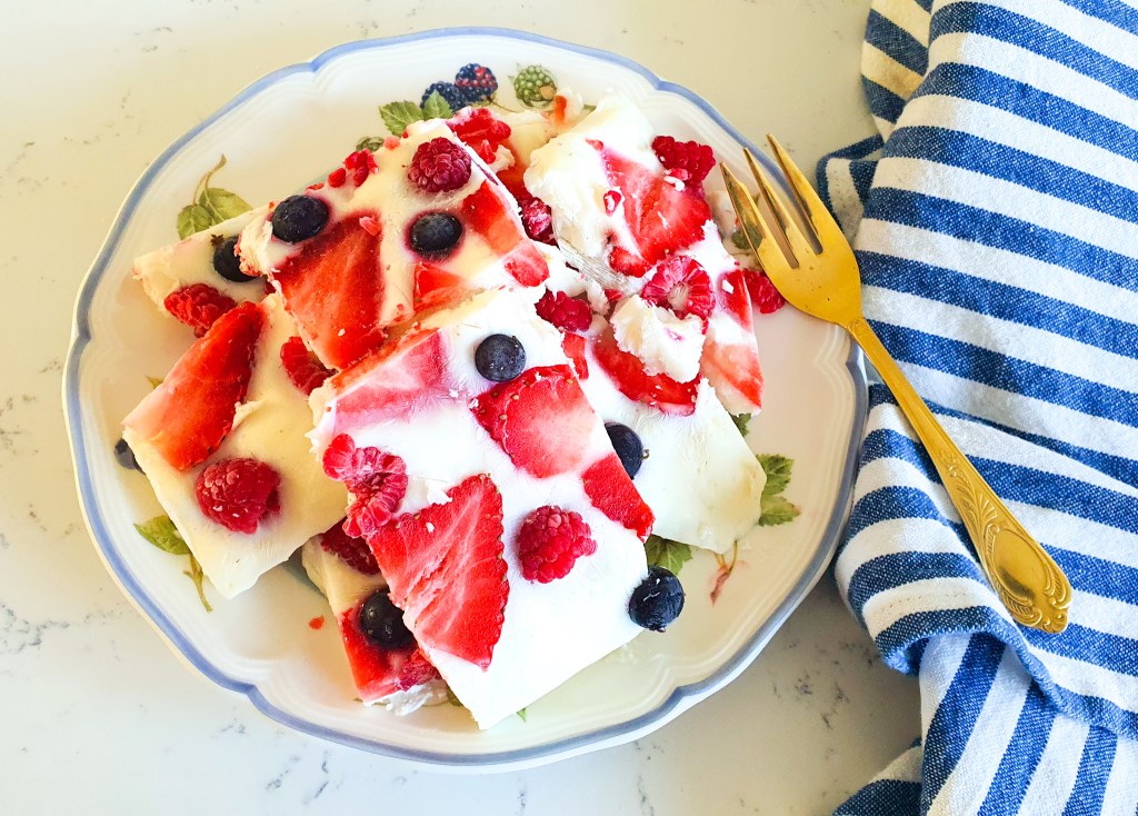 Sega korralikult või vahusta mesi jogurtiga – lisa mett oma maitse järgi, et jogurt saaks magusa(ma)ks. Määri segu spaatliga ühtlase kihina küpsetuspaberiga kaetud alusele või sirgele plaadile. Tükelda marjad ja lüki need jogurtikattesse, soovi korral võid lisada ka purustatud ja röstitud pähkleid, küpsisetükke vms.