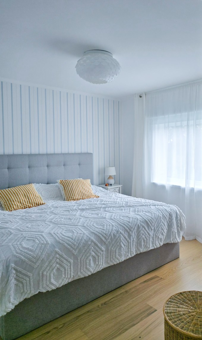 See on lugu sellest, kuidas tünga saavad kõik need, kes lootsid mahlakaid isikliku elu detaile lugeda (kahjurõõmus naer – toim,). Aga tegelikult muidugi on see lugu sellest, kuidas me oma magamistoa lõpuks valmis saime. Kaks aastat ja tuba valmis nigu niuhti! Uus magamistuba pidi olema kantud mereigatsusest; selline natuke boho ja looduslike materjalide usku, liivakarva, erinevat tooni valge ja sinise lummuses.